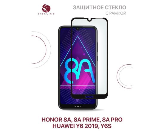 Защитное стекло для Honor 8A, 8A Pro, 8A Prime, Huawei Y6 2019, Y6s с рамкой (Хонор 8А Про 8А Прайм Хуавей У6 2019 У6s)