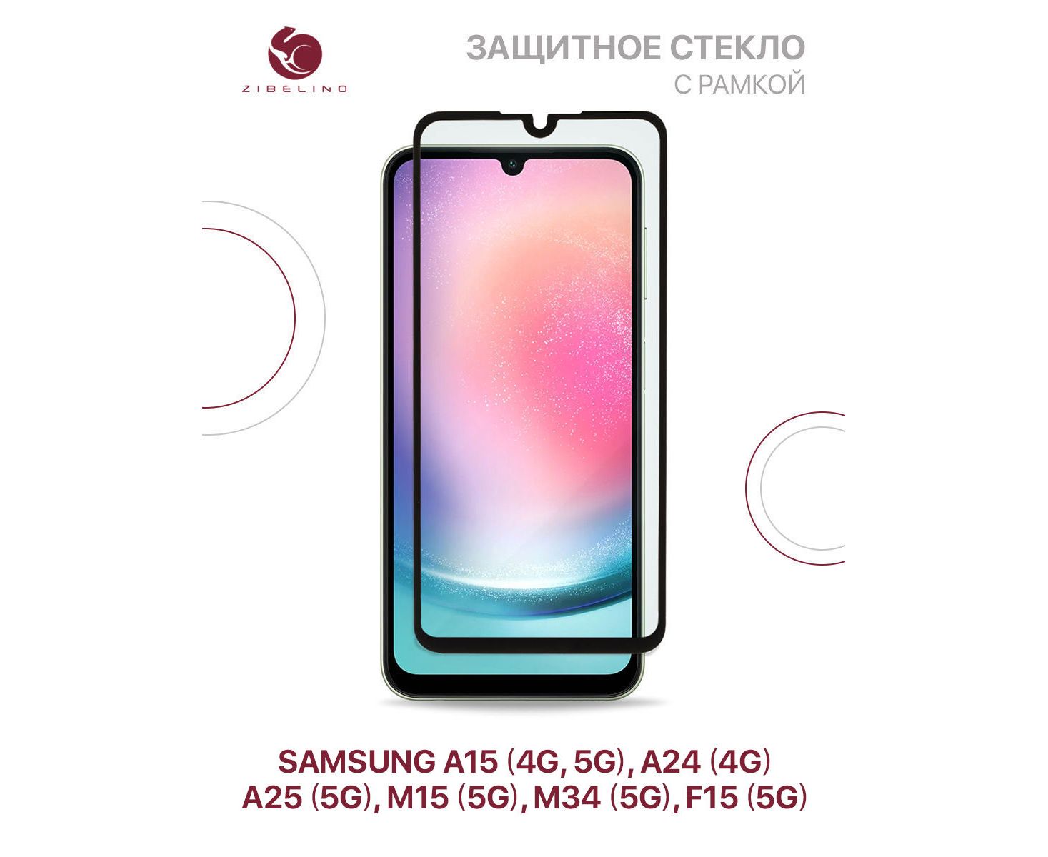 Защитное стекло для Samsung A15 (4G, 5G), A24 (4G), A25 (5G), M34 (5G), M15 (5G), F15 (5G) с рамкой