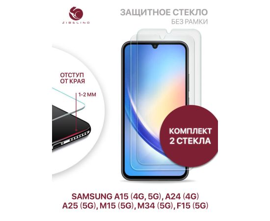 Защитное стекло (Комплект 2шт) для Samsung A15 (4G, 5G), A24 (4G), A25 (5G), M34 (5G), M15 (5G), F15 (5G) без рамки