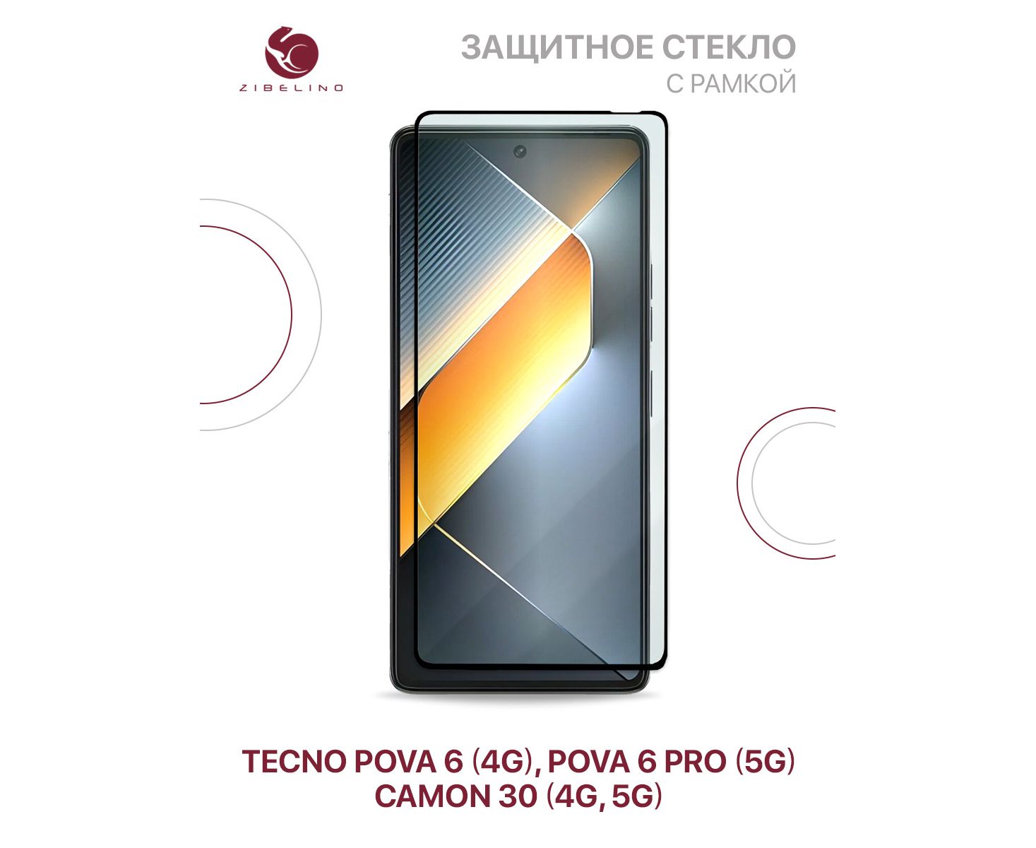 Защитное стекло для Tecno Pova 6, Pova 6 Pro, Tecno Camon 30 (4G, 5G) с рамкой (Техно Пова 6 Про, Текно Камон 30 4G 5G)