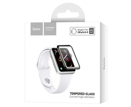 Защитное стекло HOCO Tempered Glass для Apple Watch 4, Full Glue 3D, 0.15mm, Test1, 40mm, прозрачный+черная рамка