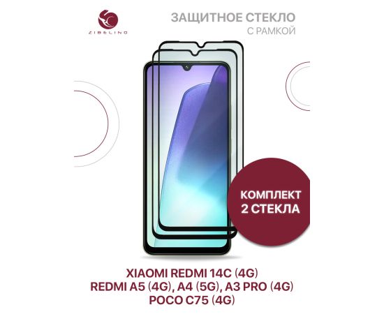 Защитное стекло ( Комплект 2 шт ) для Xiaomi Redmi A5 (4G) 2025, 14C (4G), Poco C75 (4G), Redmi A3 Pro (4G), A4 (5G) с черной рамкой (Ксиоми Редми А5, 14C Поко С75, Редми А3 Про А4)