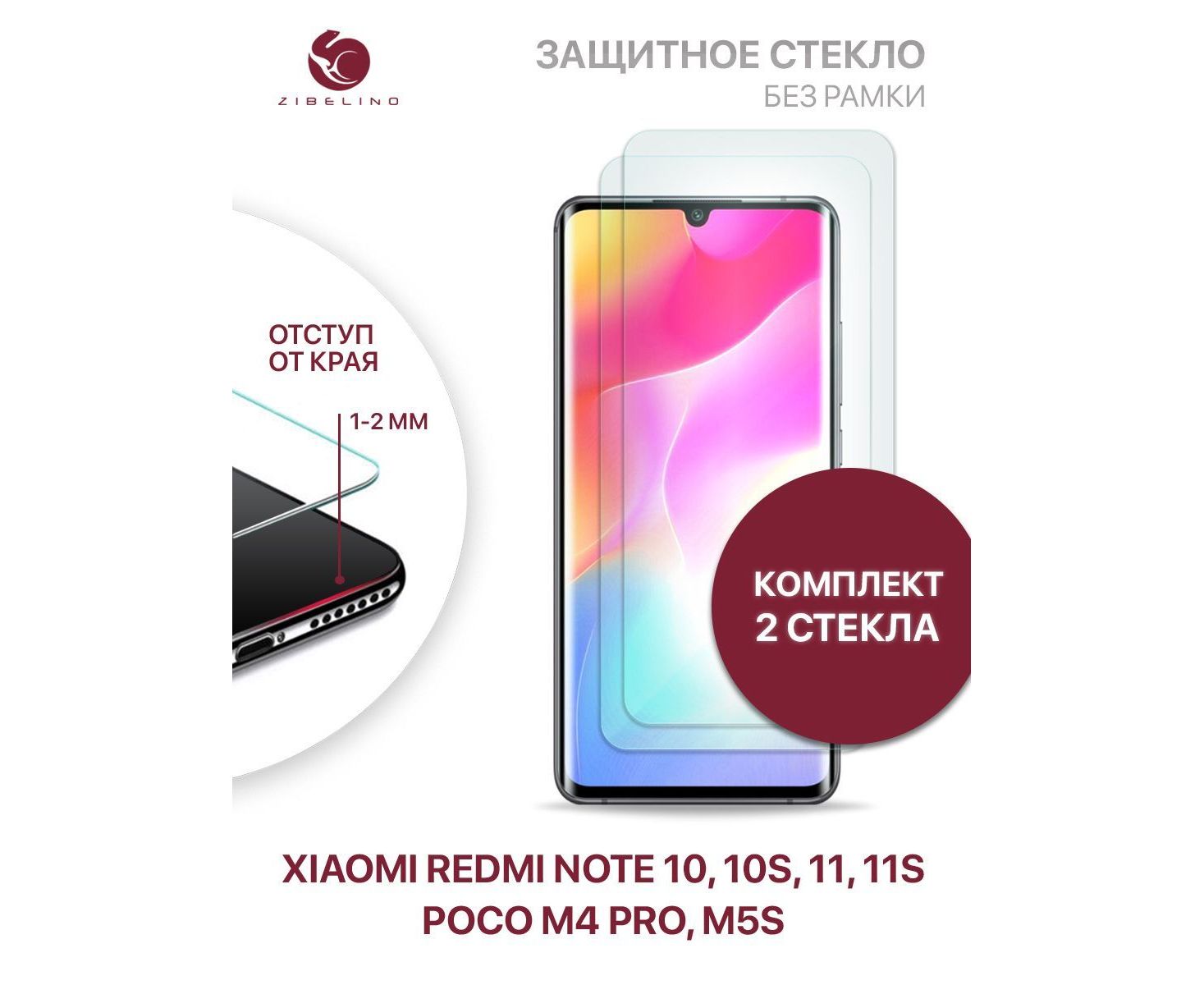 Защитное стекло (Комплект 2 шт) для Xiaomi Redmi Note 10, 10S, Xiaomi Redmi Note 11, 11S, Poco M4 Pro, Poco M5s без рамки, с отступом от краев, Сяоми Редми Нот 10 10S 11 11S Поко М4 Про М5s