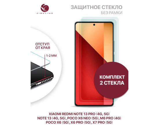 Защитное стекло (Комплект 2 шт) для Xiaomi Redmi Poco X7 Pro (5G), Note 13 (4g/5g), Note 13 Pro (4g/5g), Poco X6 (5g), X6 Pro (5g), X6 Neo (5g), Poco M6 Pro (4g) без рамки, с отступом от краев, Редми Нот 13 Про, Поко Х6 Про Х6 Нео М6 Про