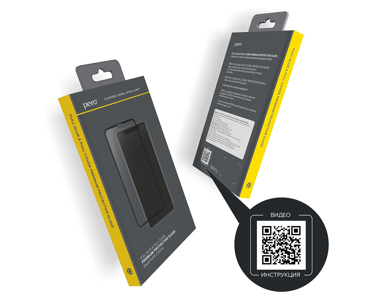 Защитное стекло PERO FULL COVER & FULL GLUE GLASS имеет прокрашенную тонкую рамку по периметру. Комплектация: защитное стекло, влажная и сухая салфетка, стикеры для удаления пыли.