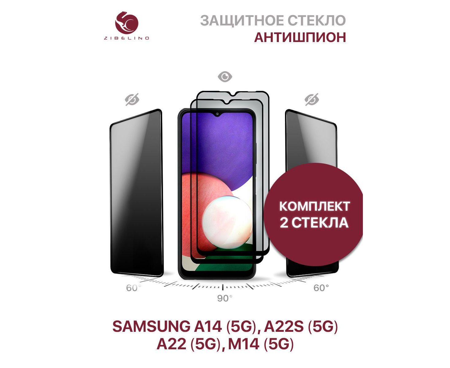 Комплект из 2 шт защитное стекло Zibelino для Samsung Galaxy A14 (5G), Samsung Galaxy A22s (5G), Samsung Galaxy A22 (5G), линейка Private (антишпион), с рамкой с минимальным отступом от краев легко устанавливается и защищает весь экран смартфона. Благодаря специальной обработке, изображение на экране видно только под прямым углом. Со стороны экран будет выглядеть черным. На экране смартфона Самсунг Галакси А14 5G не остается отпечатков, он не бликует от солнца и ламп дневного света. Стекло позволяет скрыть информацию на экране вашего устройства от посторонних глаз. Больше никто не подсмотрит ваш экран через плечо (например, в общественном транспорте). Клеевой слой по всей поверхности позволяет легко установить стекло без пузырей (на упаковке инструкция по установке стекла). Стекло Самсунг Галакси А22s 5G изготовлено из материала повышенной прочности (9Н), надежно защитит от сколов и повреждений и дорогостоящего ремонта тачпада. Стекло произведено с использованием технологии обработки краев - они не крошатся, не цепляются. Защитное стекло Гелакси А22s 5G с олеофобным покрытием, что предотвращает появление следов от пальцев. Защитное стекло упаковано в надежную фирменную упаковку из плотного картона, также защищено дополнительным ложементом из гофрокартона. Защитное стекло Самсунг Галакси А14 5G поставляется в красивой упаковке, подойдет для подарка друзьям и близким. Каждое защитное стекло проверяется перед отправкой. В комплекте влажная салфетка для обезжиривания экрана, ткань из микрофибры, стикер для удаления пыли. Изображение стекла и устройства на упаковке являются условными.