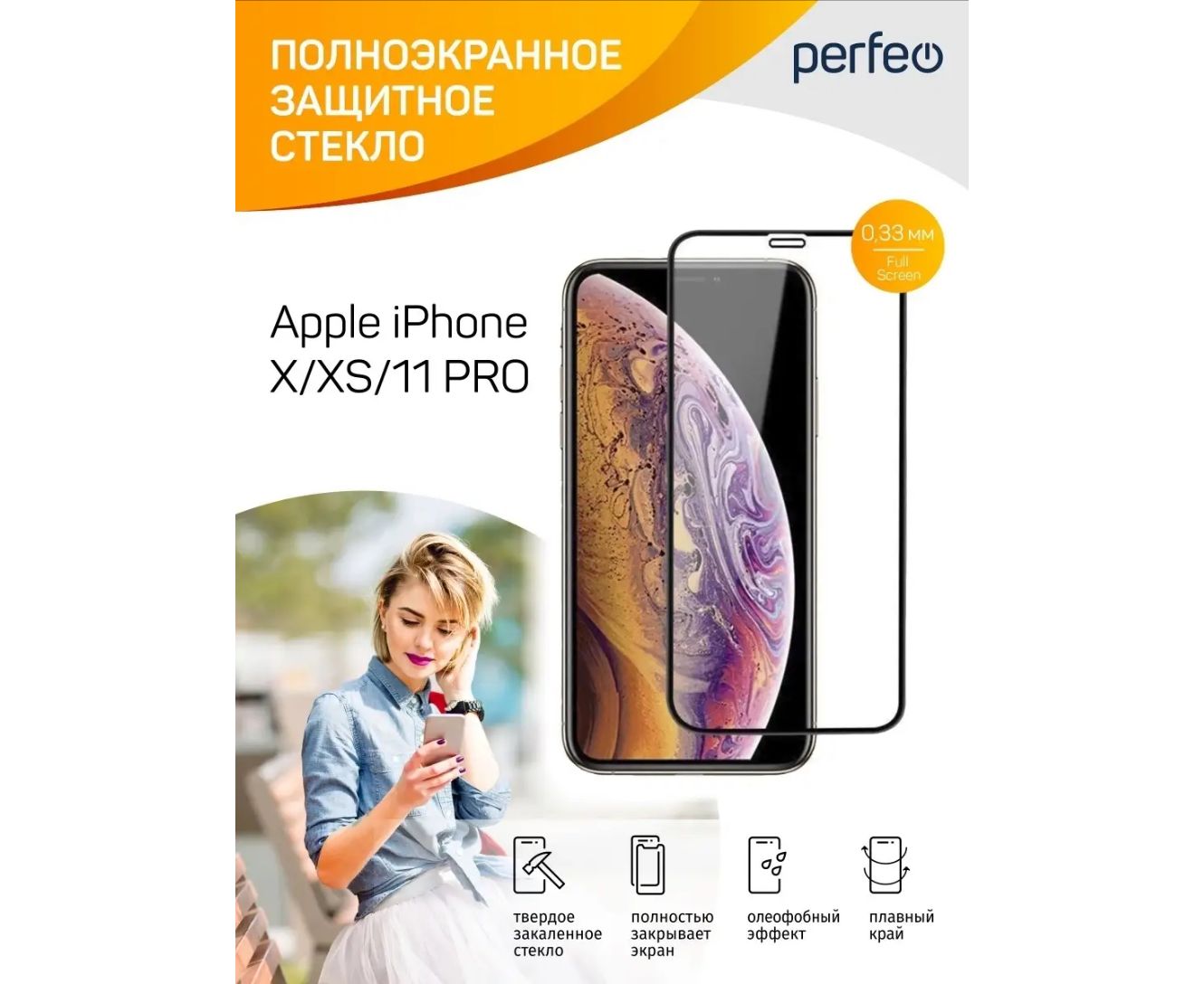 Защитное стекло тех пак Apple iPhone X/XS/11 PRO черный Full Screen